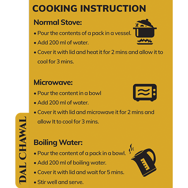 | Yellow Lentils, Rice, Ghee, Onion, Tomato, Ginger, Garlic, Salt, Coriander, Chilli, Spices & Condiments. |